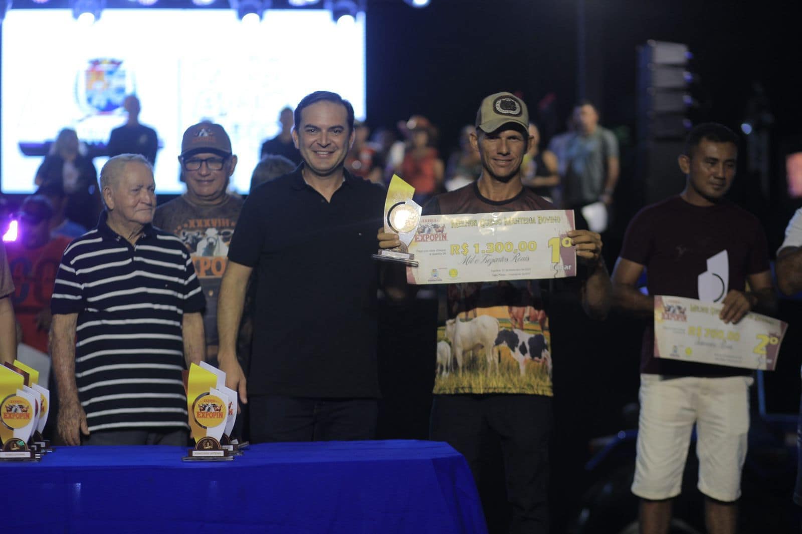 ​Os troféus aos vencedores dos concursos foram entregues pelo prefeito Mateus Assayag, presidente da Associação dos Pecuaristas de Parintins (APP), Telo Pinto, vice-presidente Nazaré Jacaúna, secretário municipal de Produção Rural, Tião Teixeira, vereador Julvan Medeiros, o sócio Geraldo Medeiros e o diretor técnico, Walter Leandro Coutinho. Eles estavam acompanhados de membros da coordenação no palco do Parque de Exposição Agropecuária Luiz Lourenço de Souza.
